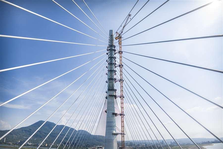 Uzstādīts pēdējais tērauda klāja posms 405 miljonus ASV dolāru vērtajam Danjiang tiltam, kas šķērso Tamsui upes ieteku Taipejā, Taivānā. Danjiang tilts ir pasaulē garākais viena torņa asimetriskais vanšu tilts, un tā atklāšana paredzēta 2026. gada maijā. Zaha Hadid Architects projektēto 920 m garo tiltu sadarbībā ar Sinotech Engineering Consultants un Leonhardt Andra und Partner Beratende Ingenieure būvē Taivānas uzņēmums Kung Sing Engineering. (Attēls: Paddy Chao, izmantojot Zaha Hadid Architects)