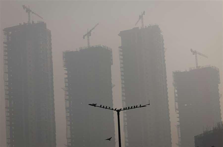 Noidā, Ņūdeli nomalē, Indijā redzamas dzīvojamās ēkas, kas tiek būvētas biezā smogā un gaisa piesārņojumā. Būvniecības darbi pilsētā pašlaik ir apturēti, satraucoties par augsto gaisa piesārņojuma līmeni.