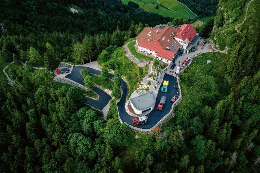 Būvuzņēmējs Jozefs Bēks atjaunojis ceļu uz Vācijas augstākajām pilsdrupām, kas atrodas 1277 m augstumā, izmantojot Vögele SUPER 1800-5 X ceļa asfalta ieklājēju. Ceļš uz pilsdrupām, kas ir nedaudz vairāk par 2 km garš, vietām ir tikai 3 m plats un bijis jau gana vecs, daudzos posmos kļuvis nelīdzens un bedrains.