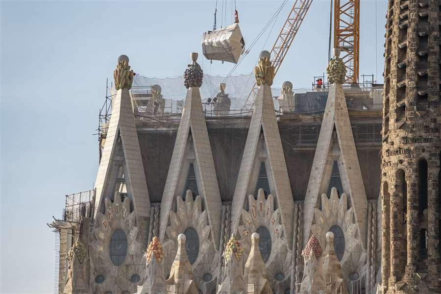 Krusta ceturtā horizontālā daļa tiek uzstādīta Sagrada Familia celtniecības laikā Barselonā, Spānijā, 2026. gada 14. janvārī. Strādnieki jau ir uzstādījuši visas četras krusta horizontālās daļas, kas vainagos Jēzus Kristus torni. Šis tornis būs augstākais bazilikā un tiks pilnībā pabeigts 2026. gada jūnijā, kas sakrīt ar arhitekta Antonio Gaudi simtgadi kopš nāves.