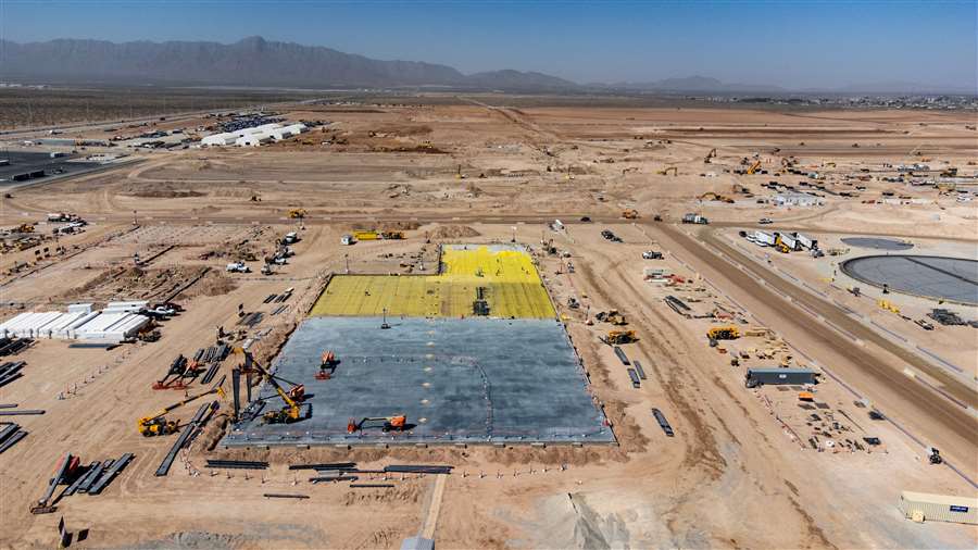 Meta Platforms datu centra kompleksa būvniecība turpinās 1000 akru lielā teritorijā tālajos Elpaso ziemeļaustrumos, netālu no Teksasas un Ņūmeksikas štatu robežas, 2026. gada 12. martā. Uzņēmums projektā iegulda miljardus dolāru, lai pielāgotos mākslīgā intelekta izaugsmei.